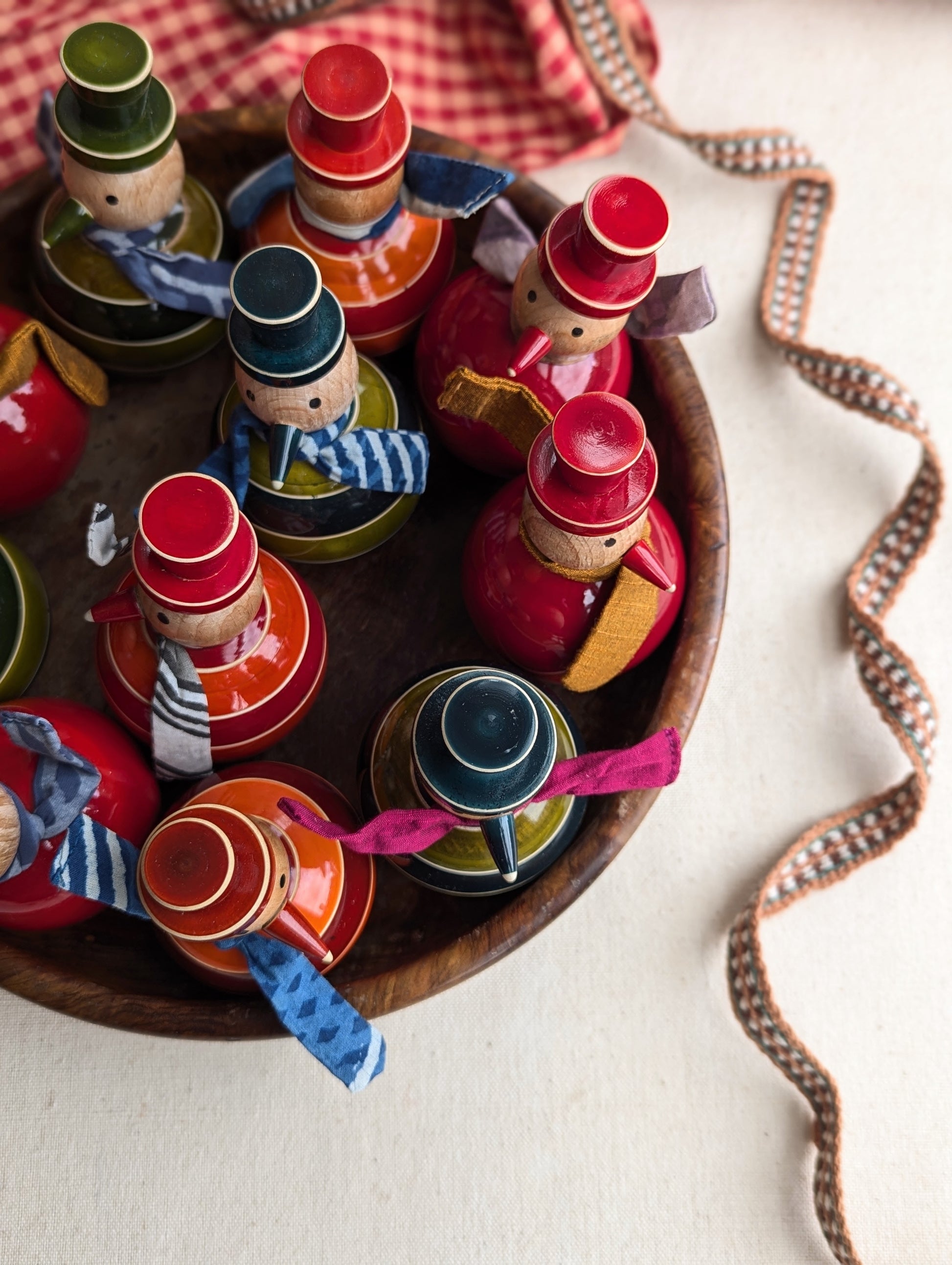 Each piece has been handcrafted by an artisan from Channapatna, Karnataka using the age-old tradition of lac-turnery using non toxic vegetable colours.
