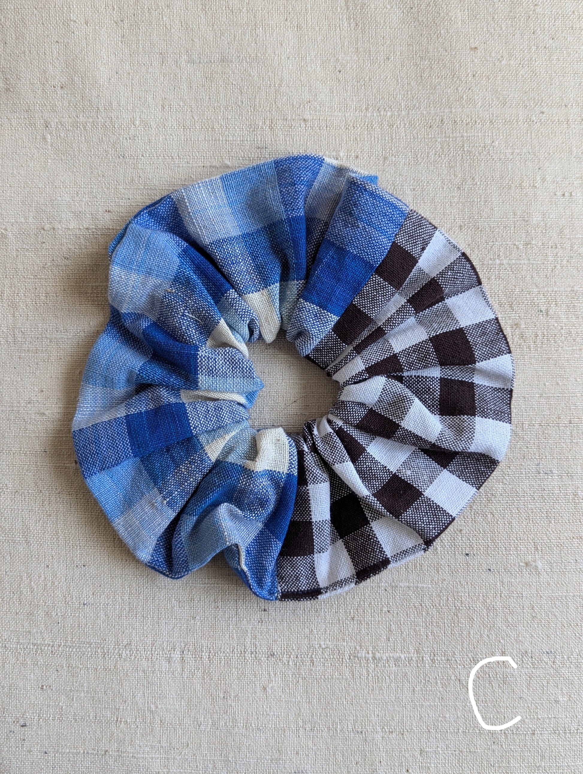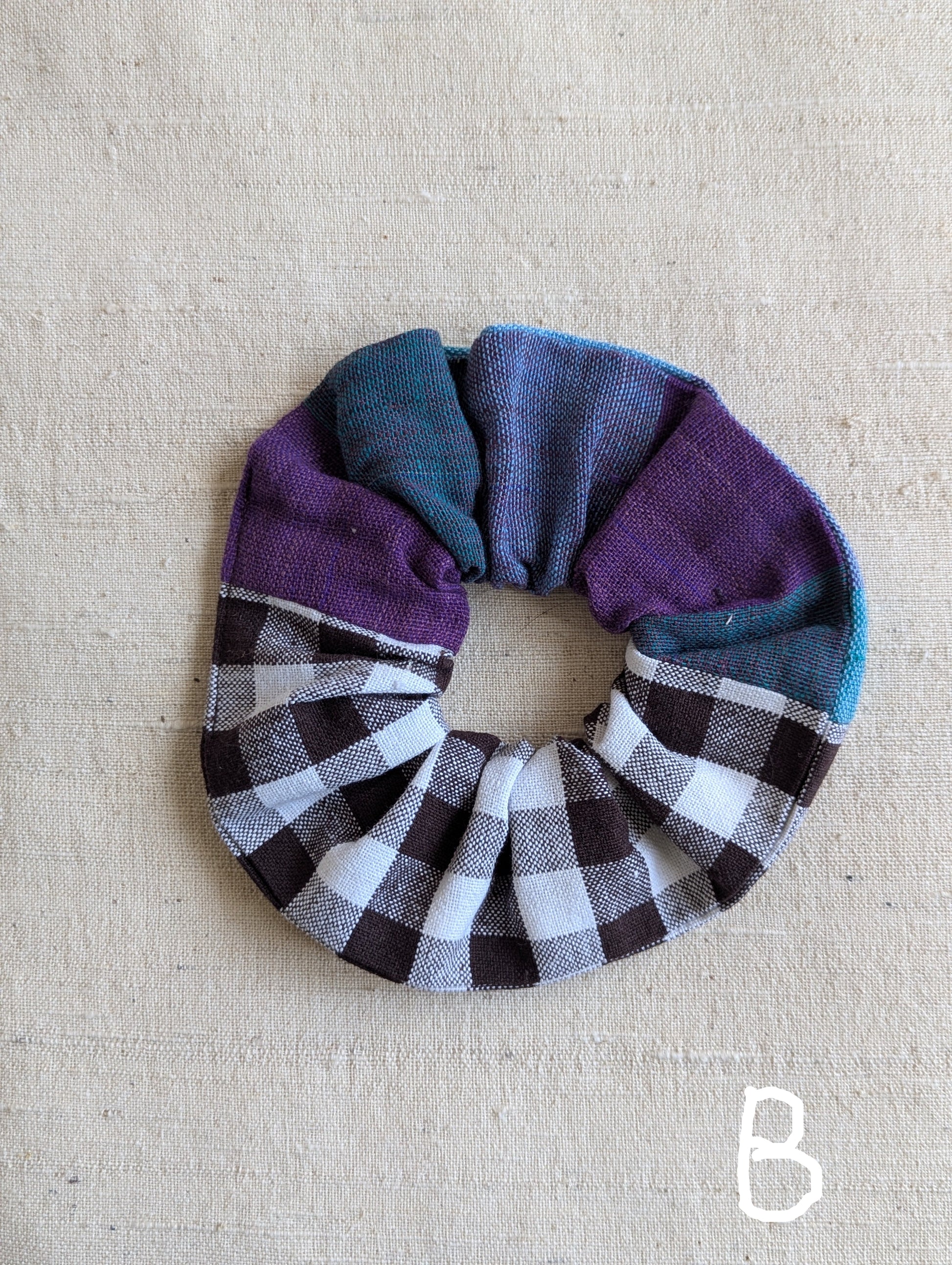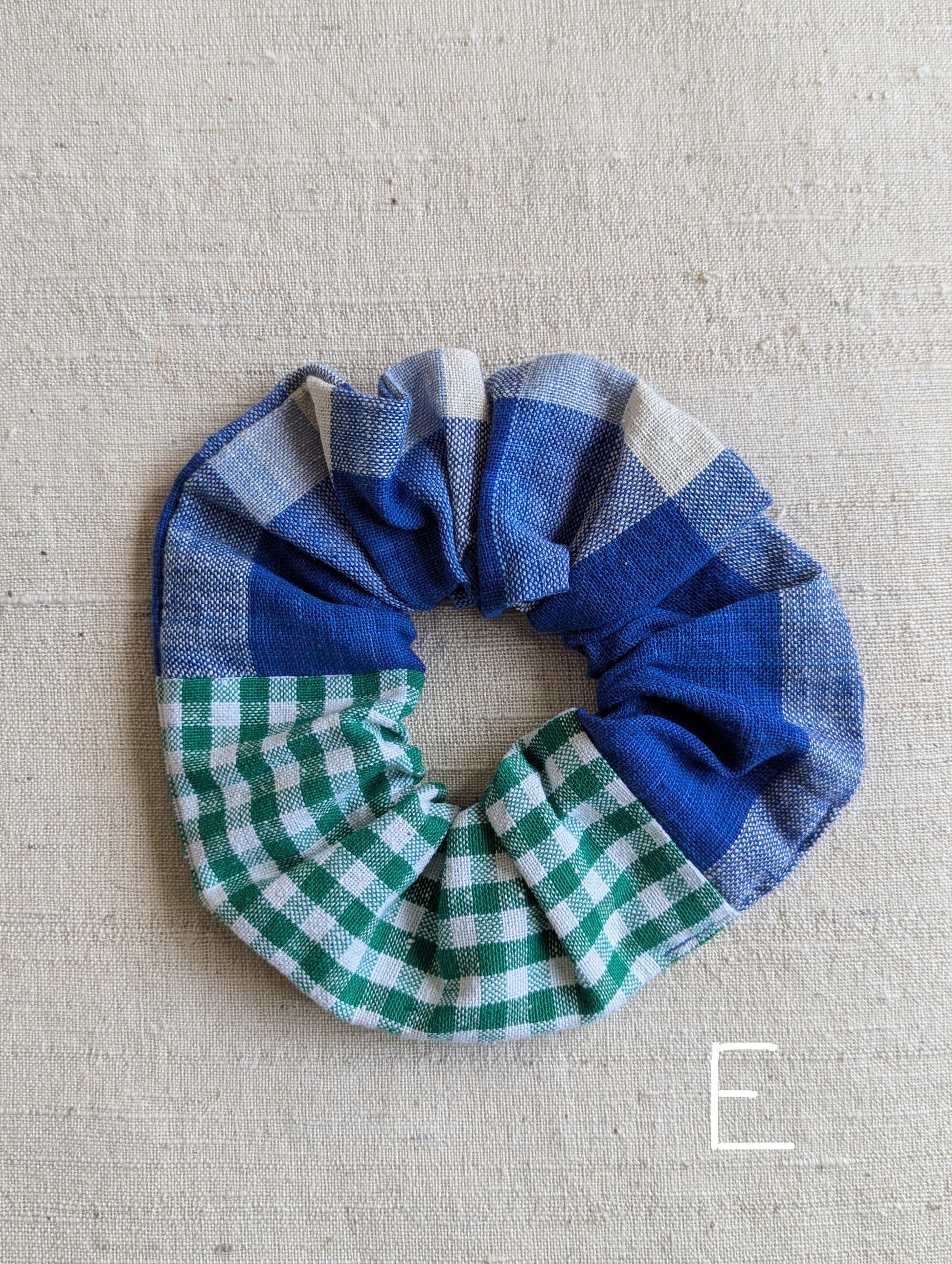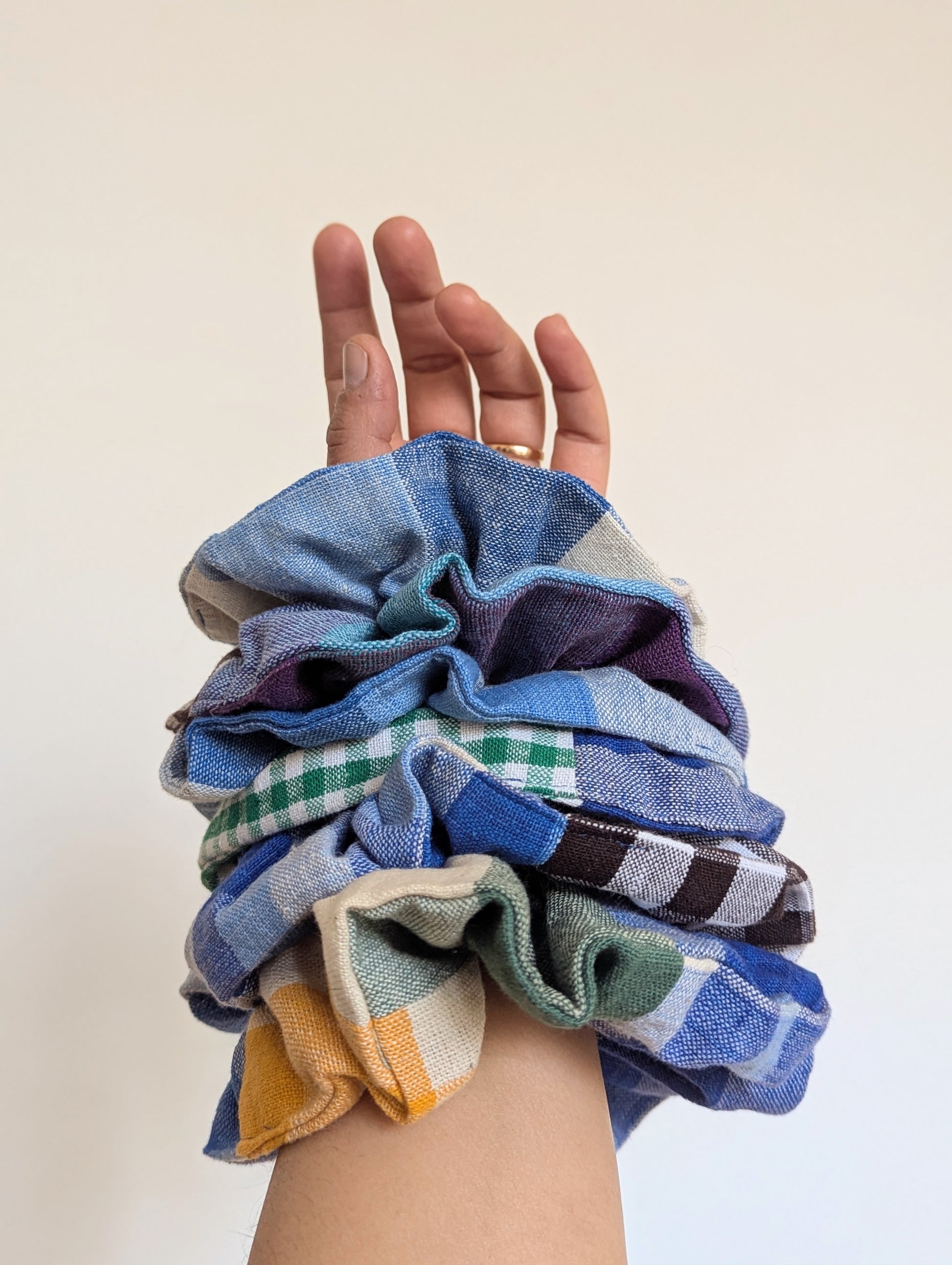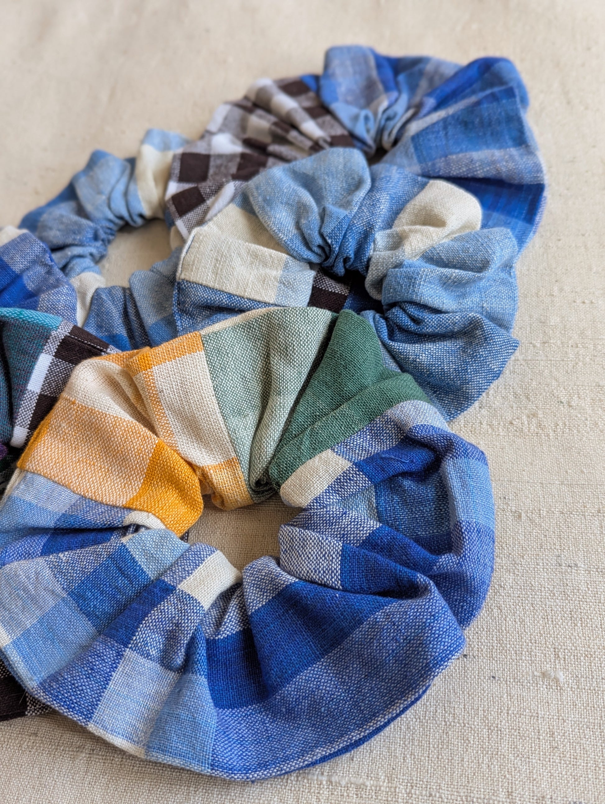 Handloom cotton large scrunchies in shades of blues and greens. Please select the one you like from the options available.