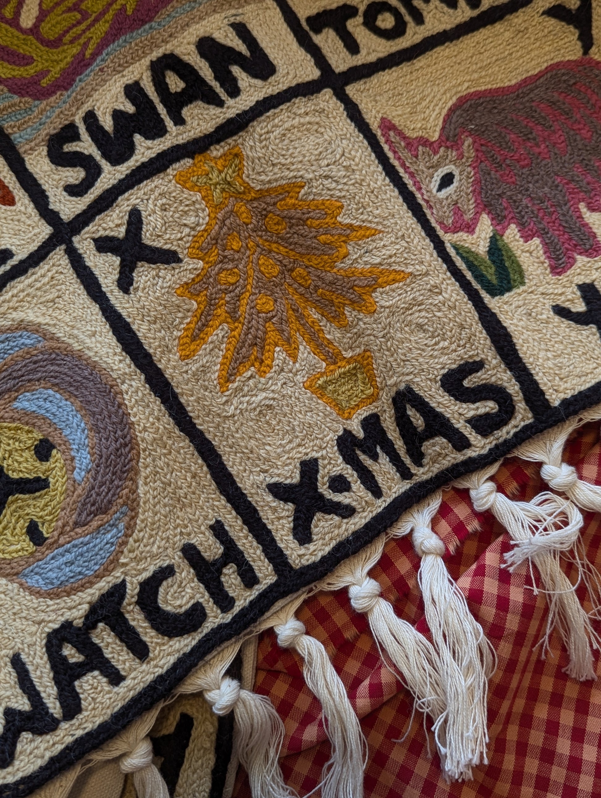 The sweetest little intricate motifs are all hand embroidered in pure wool, by artisans in Kashmir, India. These are so so special! The perfect one of a kind New baby, Christening/Christmas present 🤎