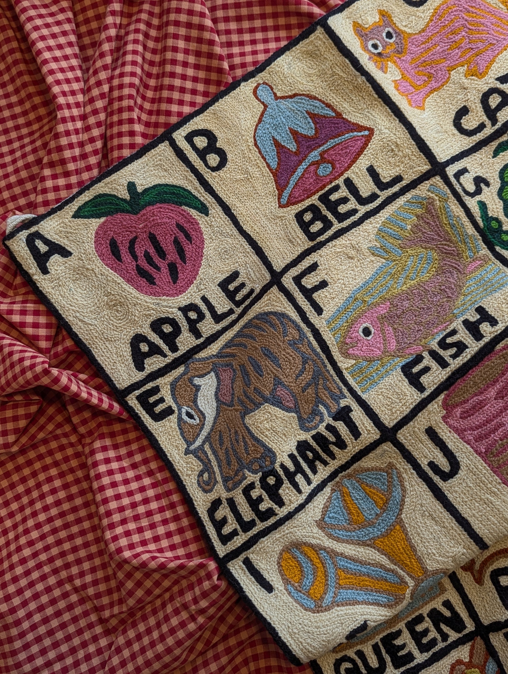 Tapestry Hand Crewel Embroidery ABC - 'Gulabi'